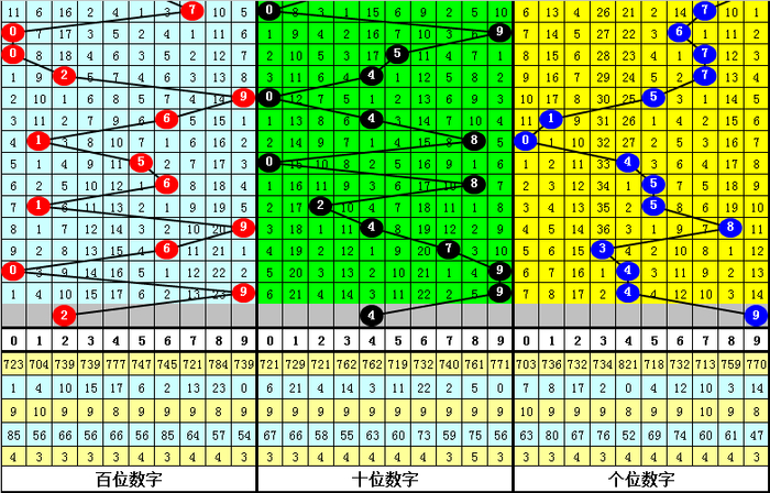 个位号码统计:下期奇偶分布分别为:偶-偶-奇-奇-奇-偶-偶-奇-偶-奇,其中奇偶数基本持平,本期个位看好奇数开出;大小分布分别为:大-大-大-大-小-小-小-大-小-大,其中大小 号码基本持平,本期个位看好大号开出。个位参考号码:9